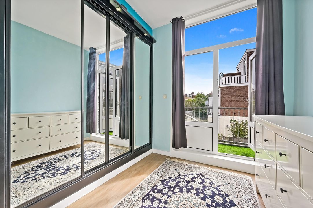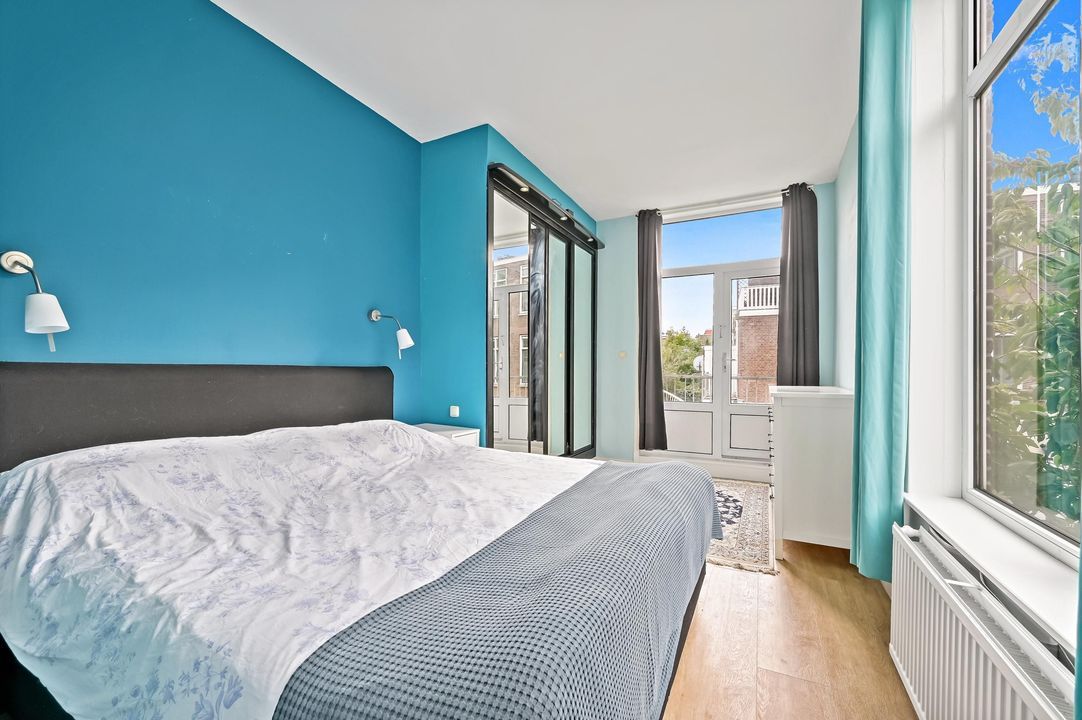 De achterkamer is ruim, rustig gelegen en biedt toegang tot het tweede balkon, waar je kunt genieten van de middagzon.