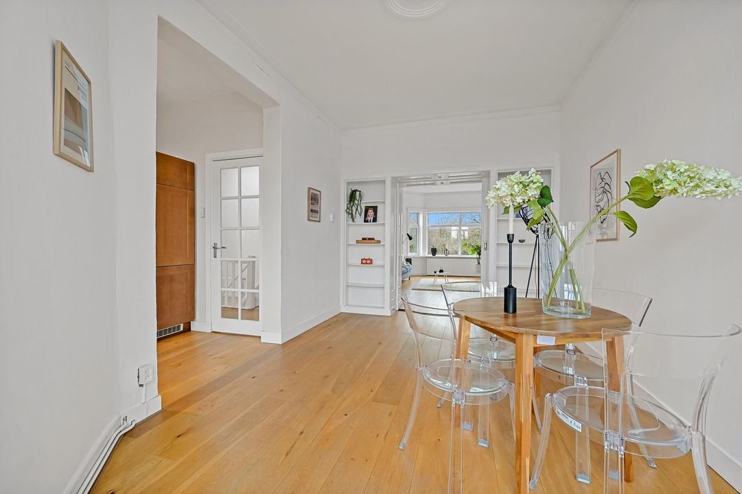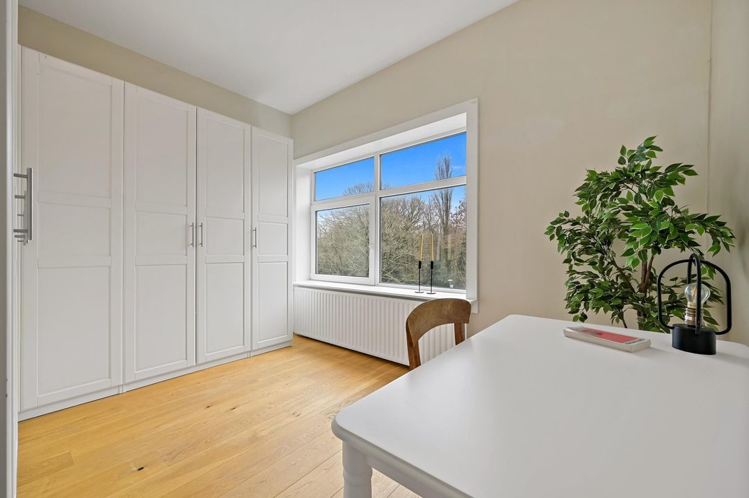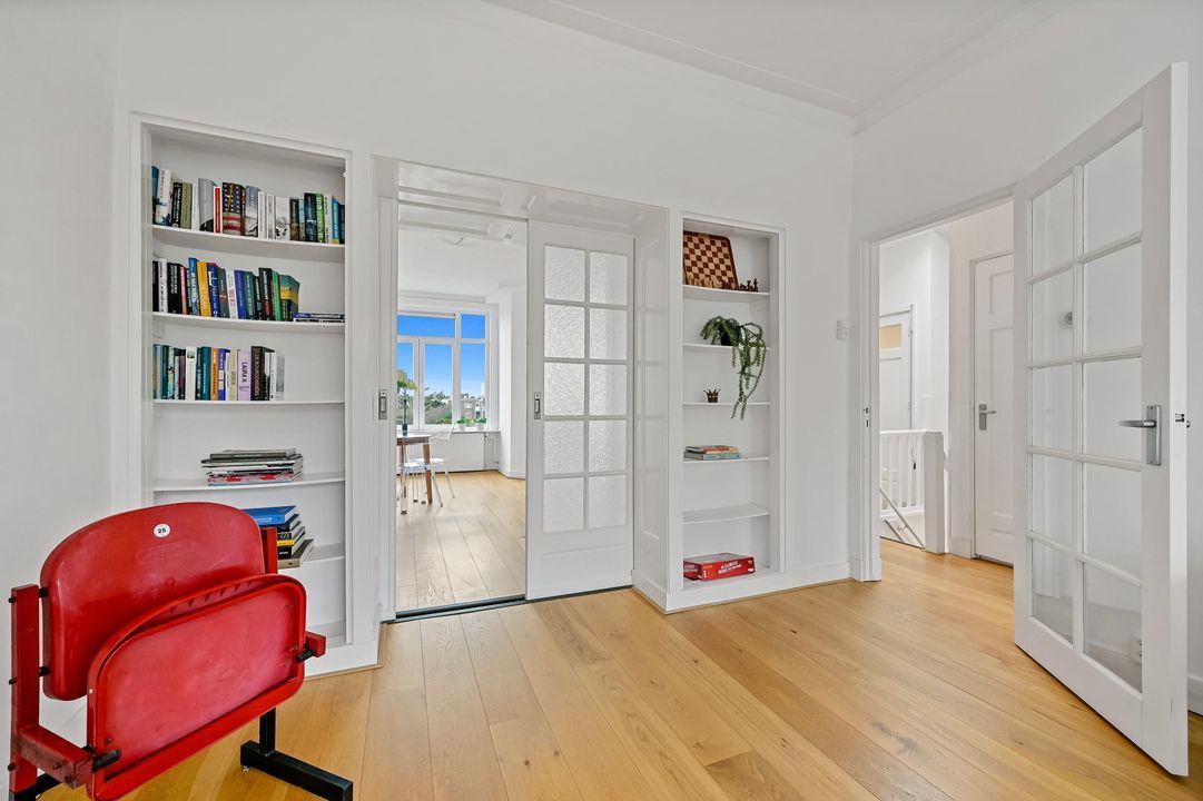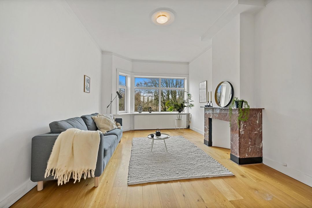 In addition, the apartment features many characteristic details, such as high ceilings, panelled doors and an attractive marble fireplace, all contributing to a charming and atmospheric living space. Moreover, you can enjoy beautiful open views over greenery at the front, while at the rear you have views towards The Hague city centre.