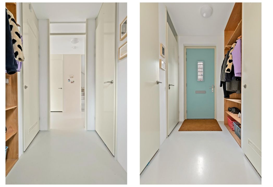 You enter the property through a spacious front garden with private driveway and access to the attached garage. The hall features the meter cupboard and a modern toilet with hand basin. From the hall, you enter a bright corridor that connects the various living areas.