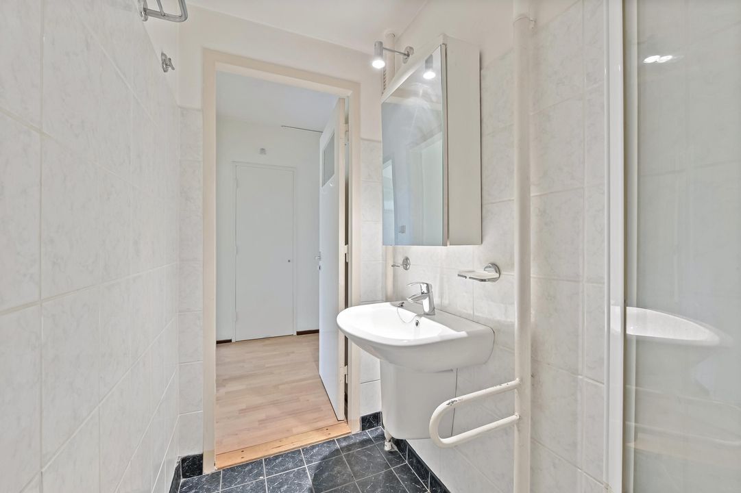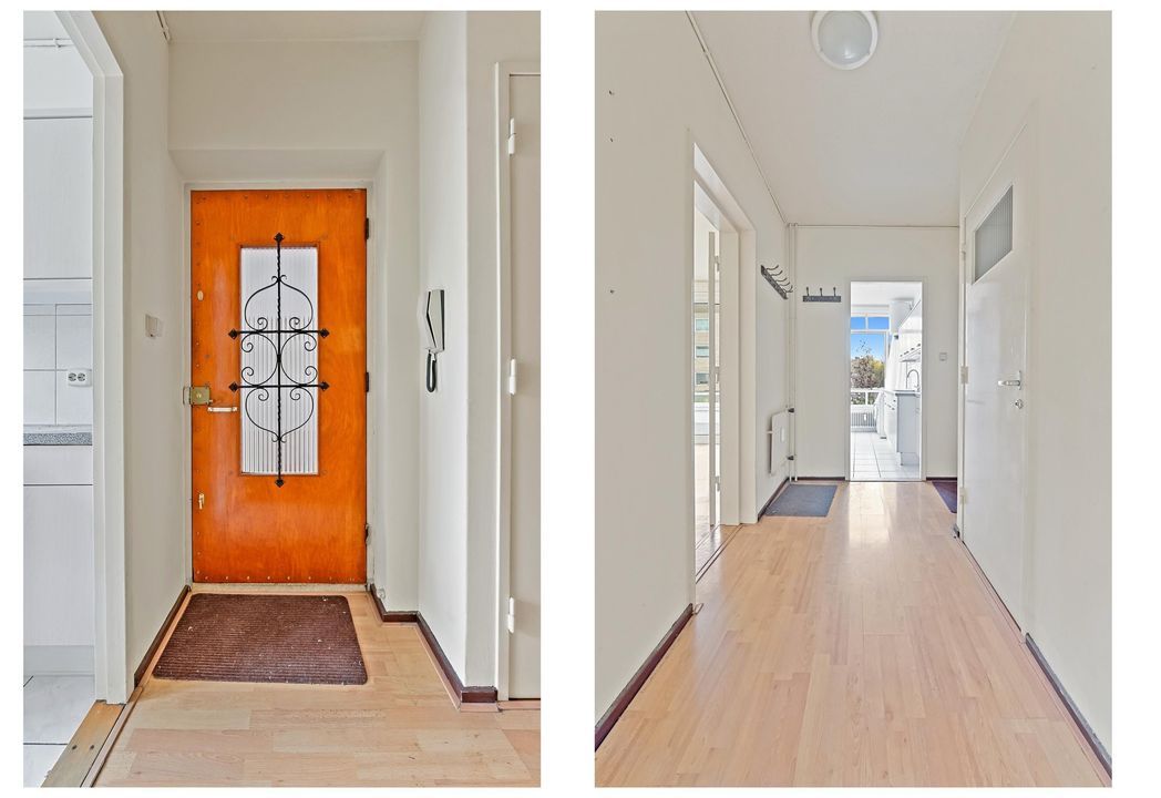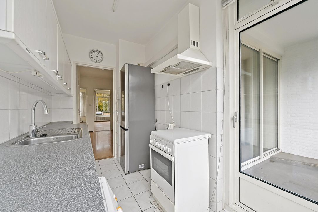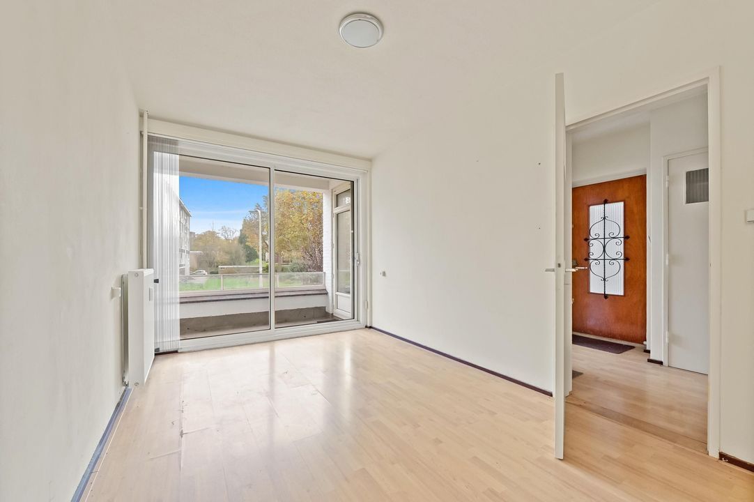 Entree woning. De hal biedt toegang tot de verschillende vertrekken. De lichte woonkamer is ruim opgezet en biedt toegang tot het balkon. De keuken bevindt zich aan de voorzijde van de woning en geeft tevens toegang tot het balkon. Aan de achterzijde van het appartement vindt u de slaapkamer welke uitkijkt op veel groenvoorziening. Naastgelegen treft u de badkamer, voorzien van zitbad met douche, wastafel en spiegelkast. Het toilet vindt u naast de badkamer en beschikt over een staand closet.