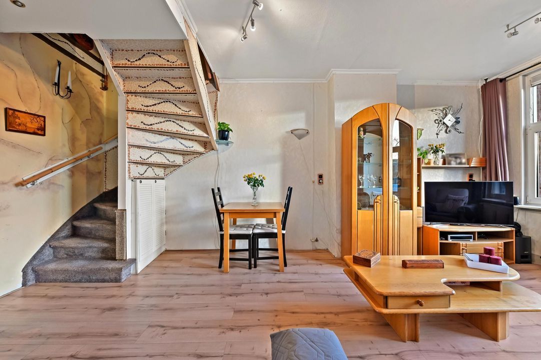 Entree woning, entreehal met meterkast en deur naar woonkamer. Aan de voorzijde van het appartement bevindt zich de woonkamer met vrij uitzicht over de kade. Middels de woonkamer is er toegang tot de ruime keuken aan de achterzijde van de woning. De keuken beschikt over diverse inbouwapparatuur en heeft veel opbergruimte. Via de keuken is het achterbalkon bereikbaar welke van ruim formaat is. Open trap vanuit de woonkamer naar de tweede verdieping.