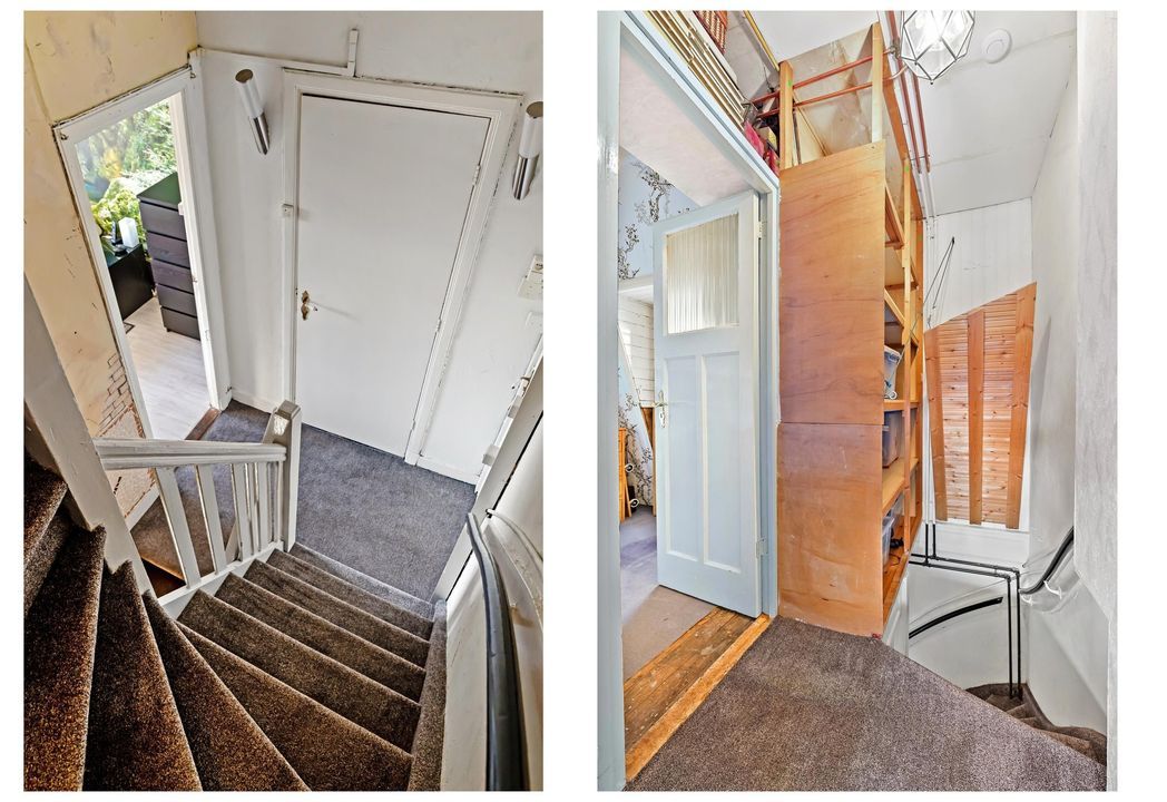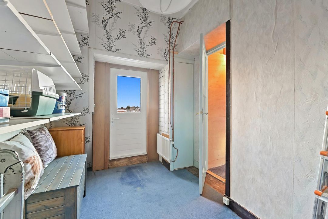 Overloop met toegang tot twee slaapkamers. De tweede slaapkamer vind je aan de voorzijde en is thans in gebruik als hobbykamer. Aan de achterzijde vind je de derde slaapkamer welke als opbergruimte in gebruik is.