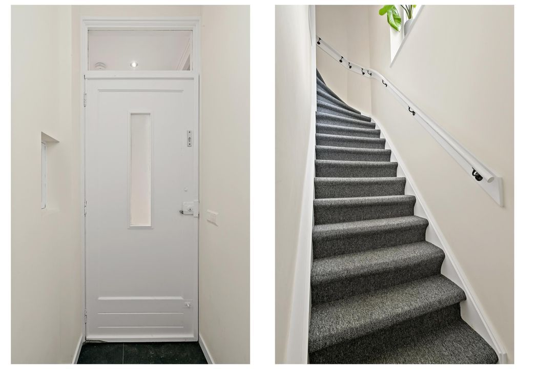 Gesloten entree welke wordt gedeeld met de benedenburen. Entreedeur met binnentrap naar de eerste verdieping.