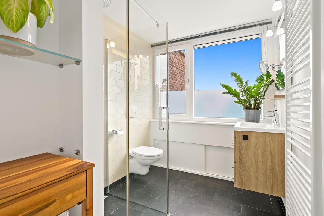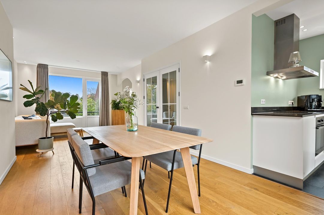 Overloop met toegang tot handige inbouwkast welke plaats biedt voor de C.V.-ketel, meterkast en garderobe, toilet en de woonkamer. Het toilet is voorzien van een wandcloset en beschikt over modern tegelwerk. Middels fraaie openslaande deuren bereik je de woonkamer. De woonkamer is van goed formaat en is aan de voorzijde doorgebroken naar de voormalig voorzijkamer waardoor er een heerlijke lichtinval is. Aan de voorzijde bevindt zich een balkon voor de ochtendzon. Vanuit de eetkamer, welke zich aan de achterzijde bevindt, is er toegang tot de keuken en het balkon. De keuken is uitgevoerd in hoekopstelling en voorzien van witte kasten en een fraai werkblad. De keuken beschikt over een fraaie weggewerkte koel-/vriescombinatie, inductiekookplaat, RVS afzuigkap, oven, vaatwasmachine en RVS wastafel. Vanuit de keuken is het derde balkon bereikbaar. Op dit balkon kan je genieten van de laatste zonnestralen van de dag!