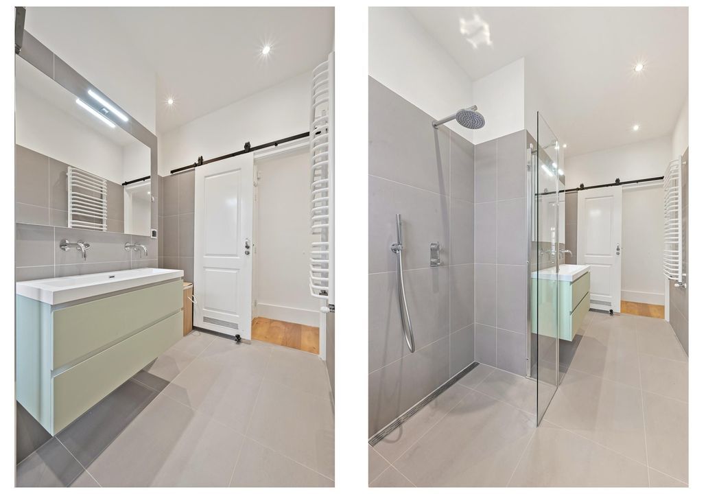 The apartment is in excellent condition and ready to move into. The generous living room benefits from its corner location and large windows, allowing plenty of natural light to flood in while maintaining a pleasant connection to life along the canal. The modern open-plan kitchen seamlessly connects to the living space and is fully equipped – perfect for cosy dinners or long evenings with friends.