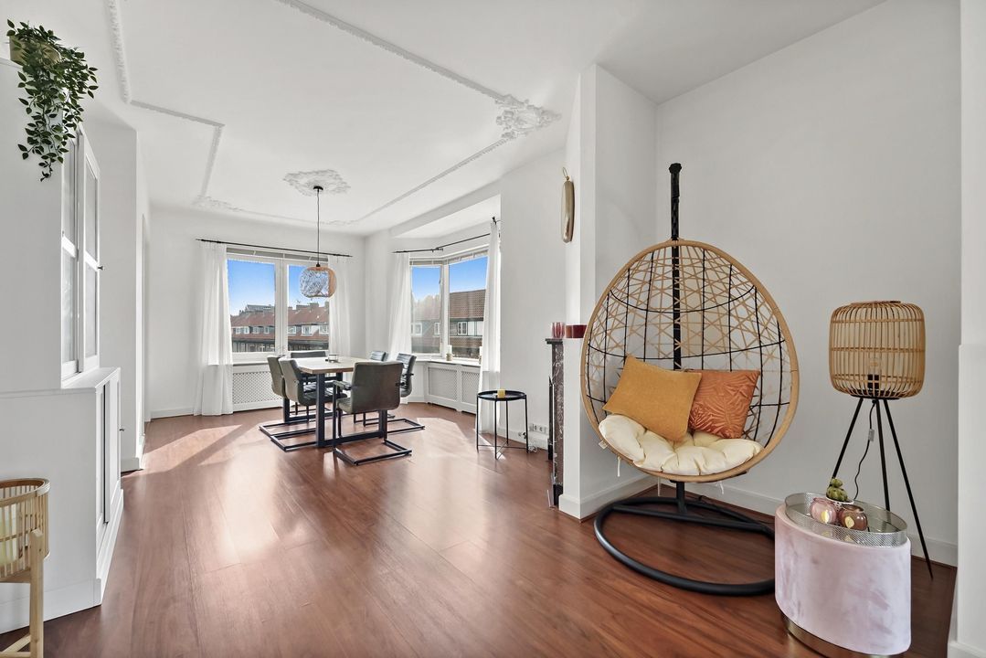 Dit lichte 4-kamer hoek-topappartement (ca. 101 m²) op de tweede verdieping combineert het beste van twee werelden: charmante jaren ’30 details en een fijne, open indeling die perfect past bij een eigentijdse lifestyle.