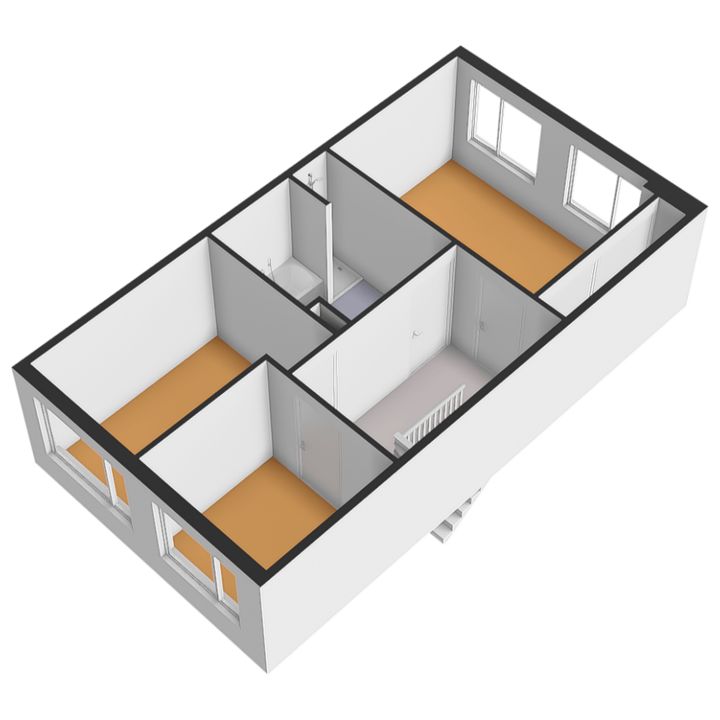 Overloop met toegang tot meerdere goed bemeten slaapkamers. Ideaal als kinder-, werk- of logeerkamer. De badkamer is netjes en functioneel en kan indien gewenst worden gemoderniseerd.