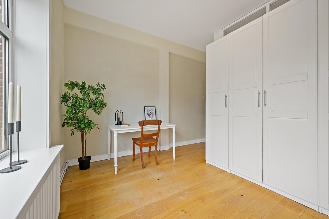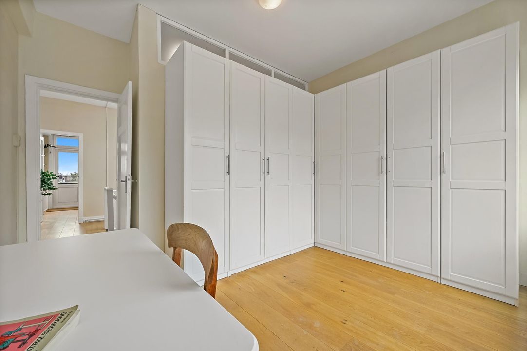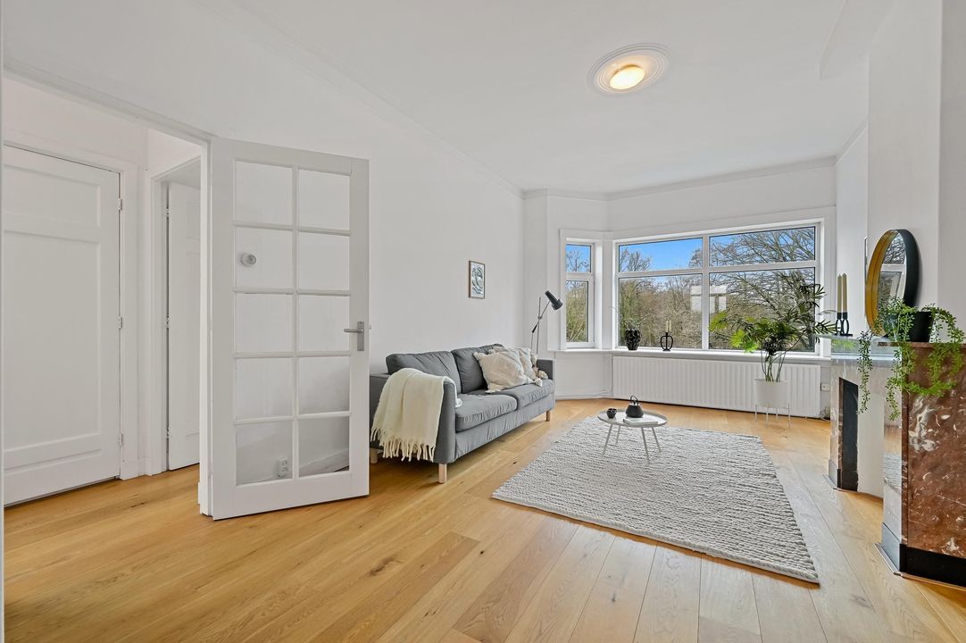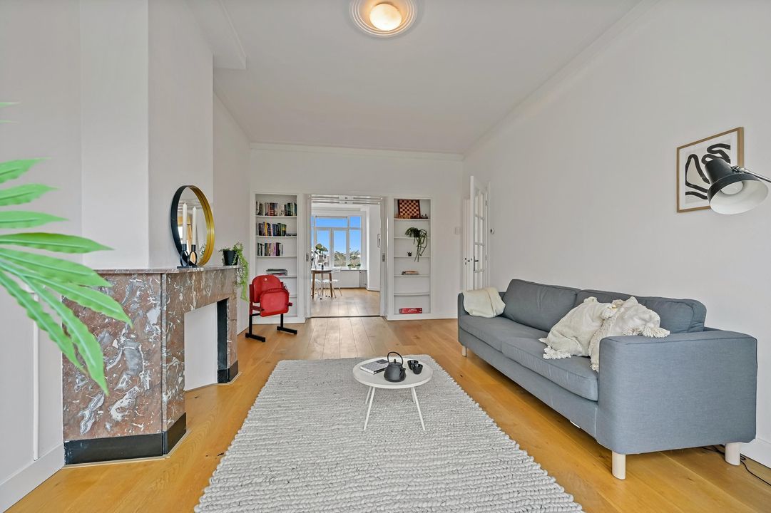 In addition, the apartment features many characteristic details, such as high ceilings, panelled doors and an attractive marble fireplace, all contributing to a charming and atmospheric living space. Moreover, you can enjoy beautiful open views over greenery at the front, while at the rear you have views towards The Hague city centre.