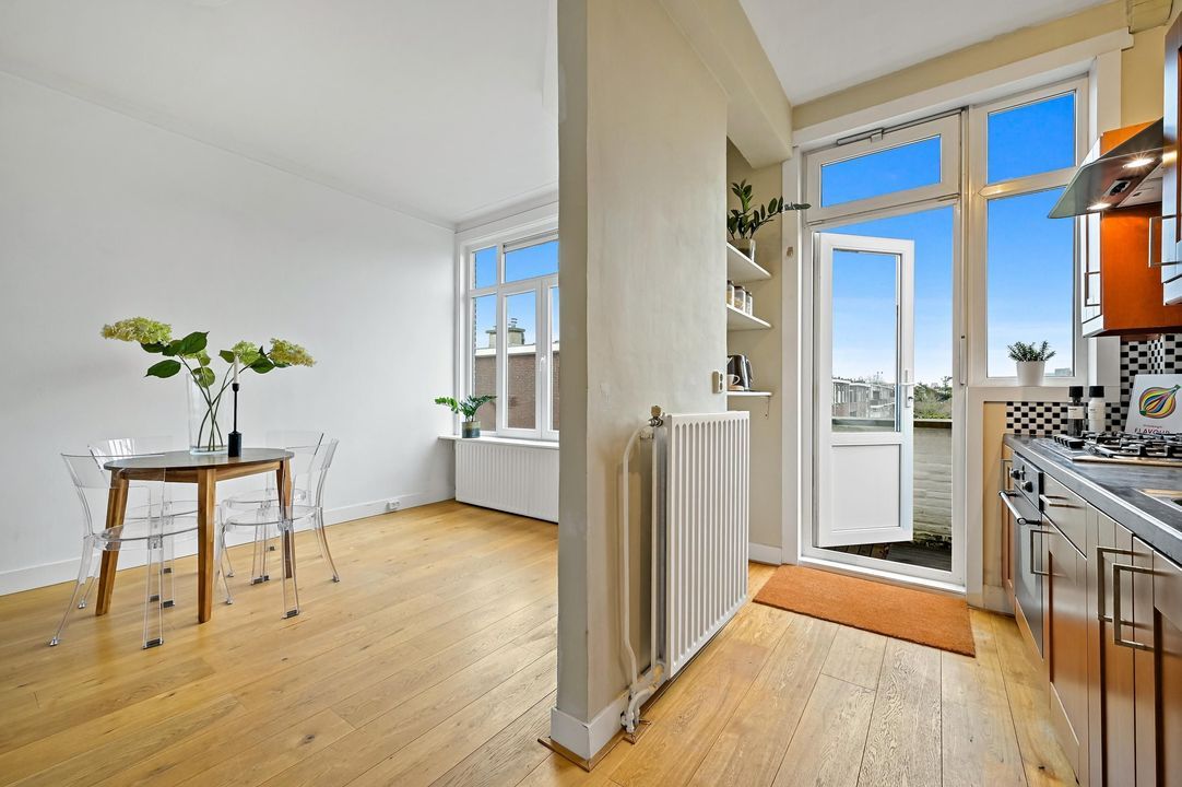 Looking for a charming and spacious apartment with additional potential? Then this bright apartment on the second (top) floor at Kamperfoeliestraat 49 is definitely worth a viewing! With a living area of approximately 85 m², unobstructed views at the front, two bedrooms, an open-plan kitchen, a spacious bathroom, and the possibility to create a roof extension or roof terrace, this property offers a unique opportunity in a highly sought-after neighbourhood.