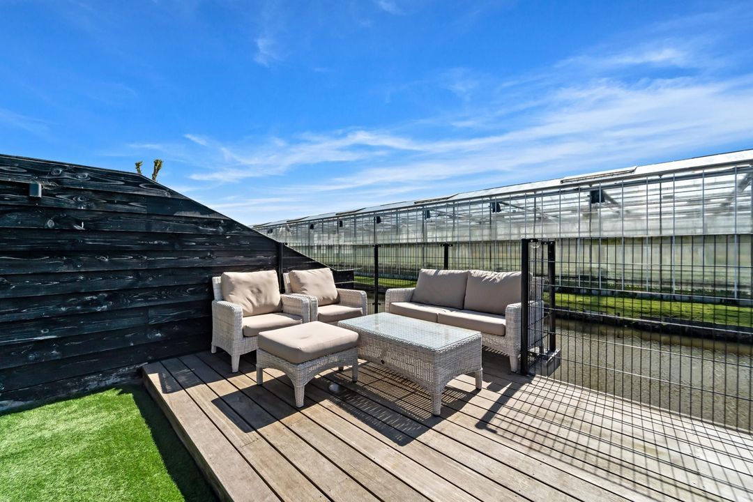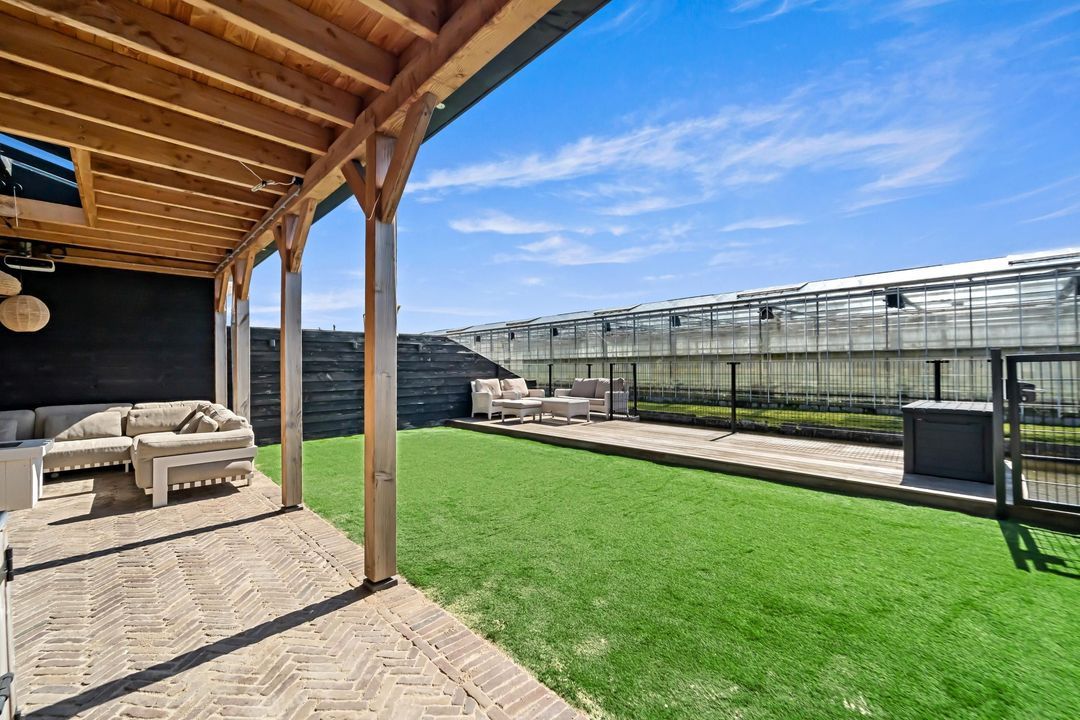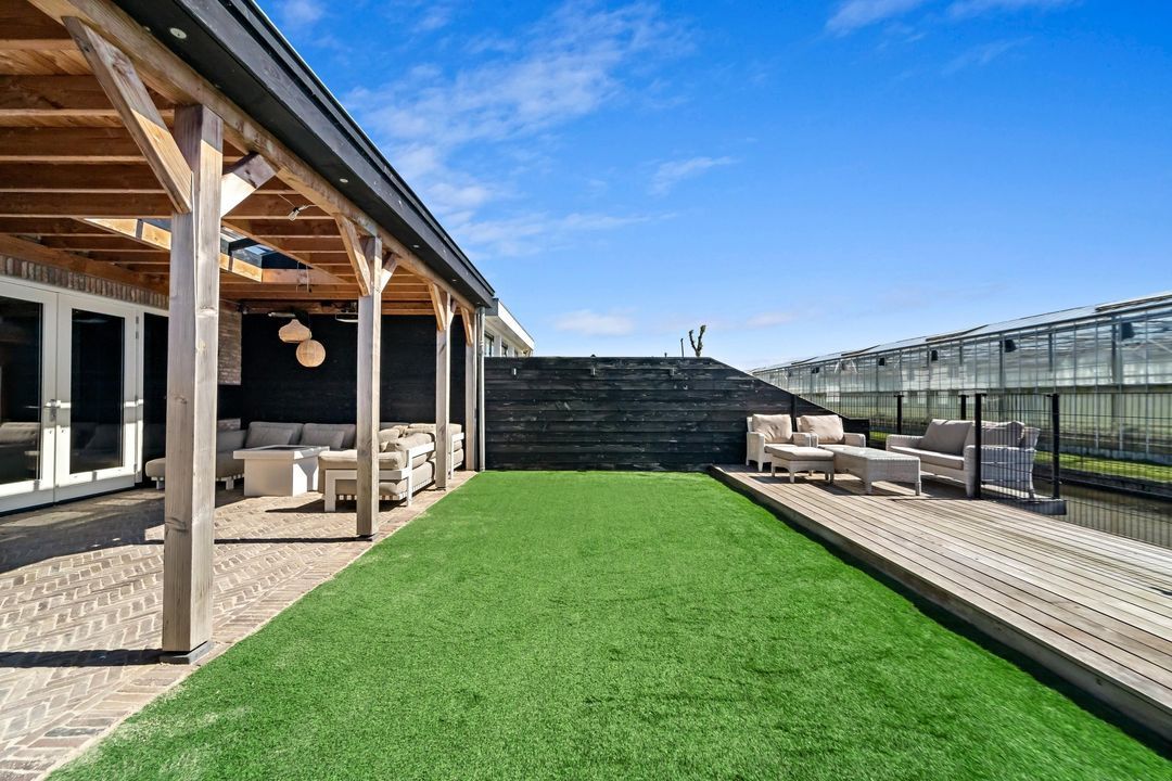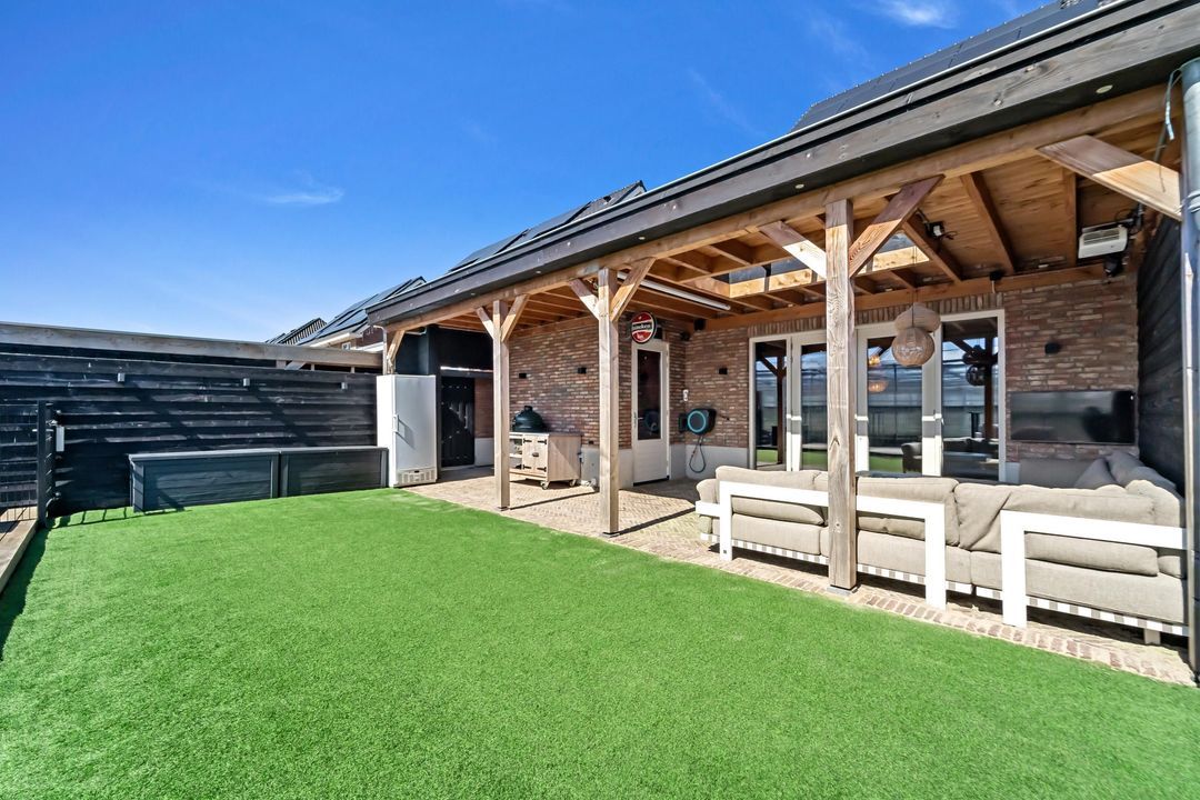 Vanuit zowel de woonkamer als de man cave is de achtertuin bereikbaar. De tuin beschikt over een fraaie serre en is aan de achterzijde voorzien van een aanlegsteiger voor een boot. De tuin is royaal van formaat en gelegen op het zonnige zuidoosten.