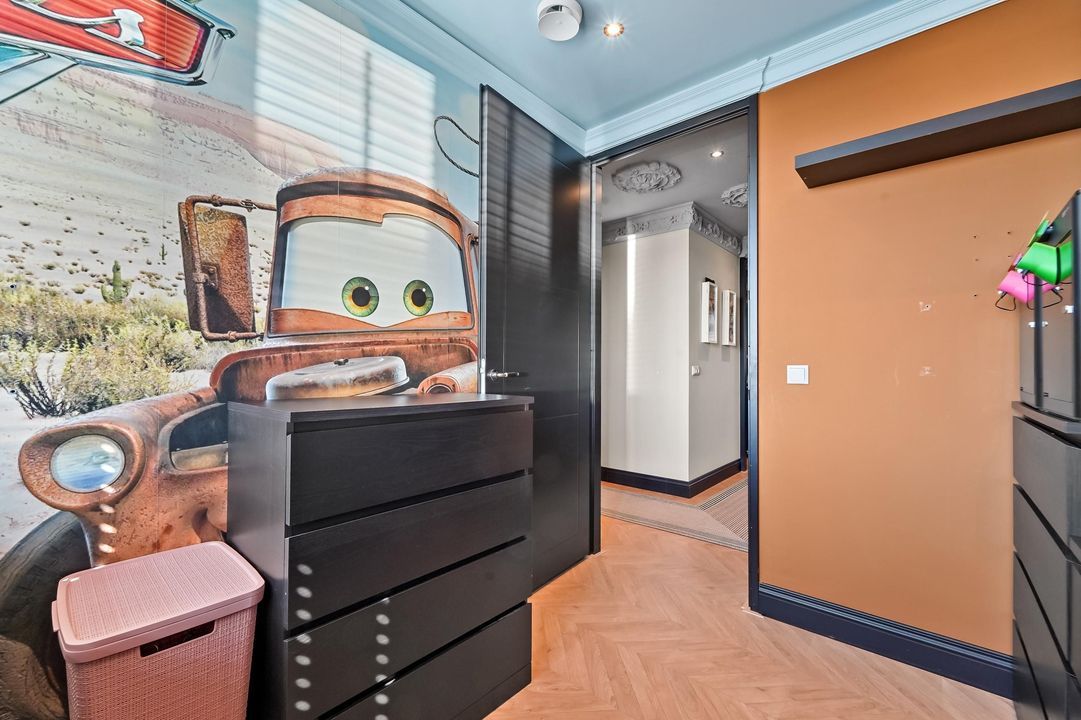 Overloop met toegang tot twee slaapkamers en de tweede badkamer. Beide slaapkamers zijn momenteel in gebruik als kinderkamers en zijn van goed formaat.