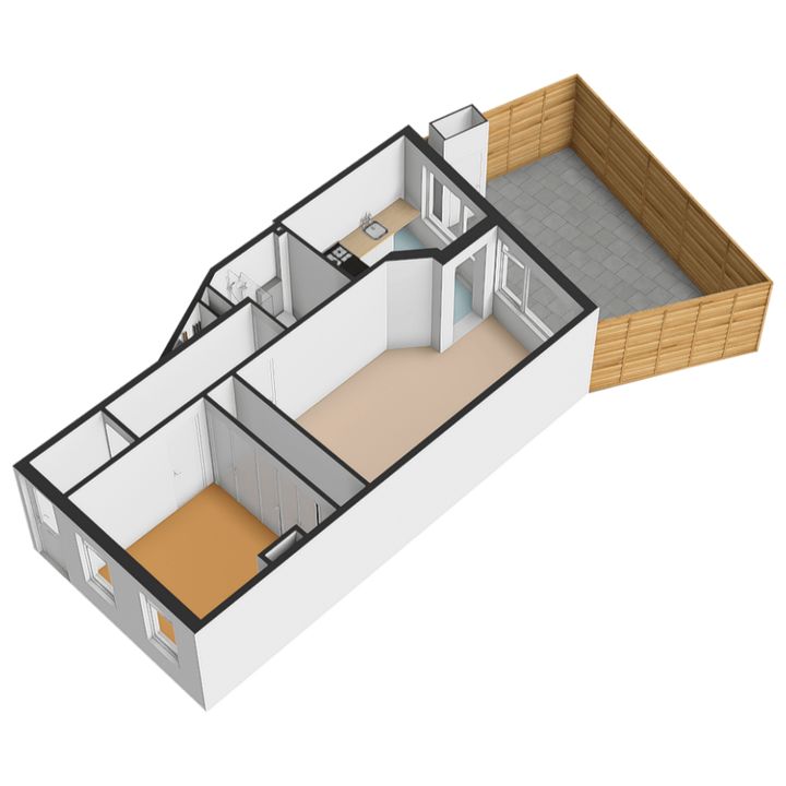 With a living area of approximately 47 m², the property is efficiently laid out, making optimal use of every square meter. The combination of a bedroom at the front and the living area with garden at the rear ensures a pleasant and functional layout.
