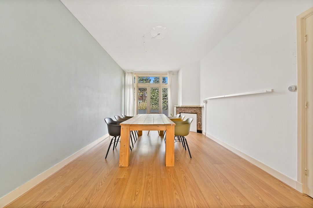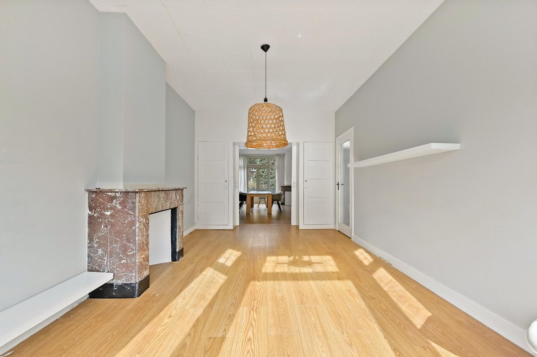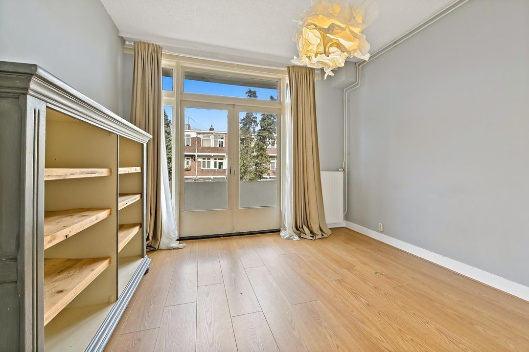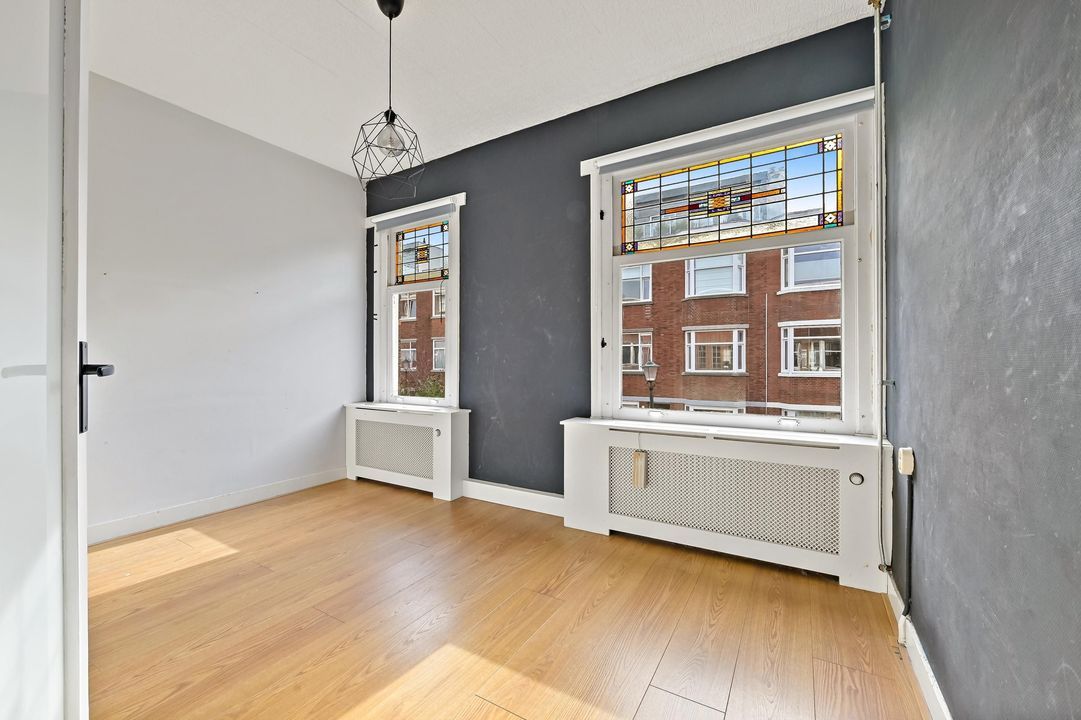 Welcome to this charming and spacious first-floor apartment in the sought-after Vruchtenbuurt. This characterful home offers plenty of opportunities to create a wonderful living space. With no less than 99 m² of living area, two generous bedrooms, and a cozy living/dining room featuring a classic en-suite room separation and built-in storage, this property exudes the characteristic charm of the 1930s.