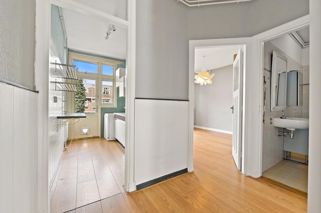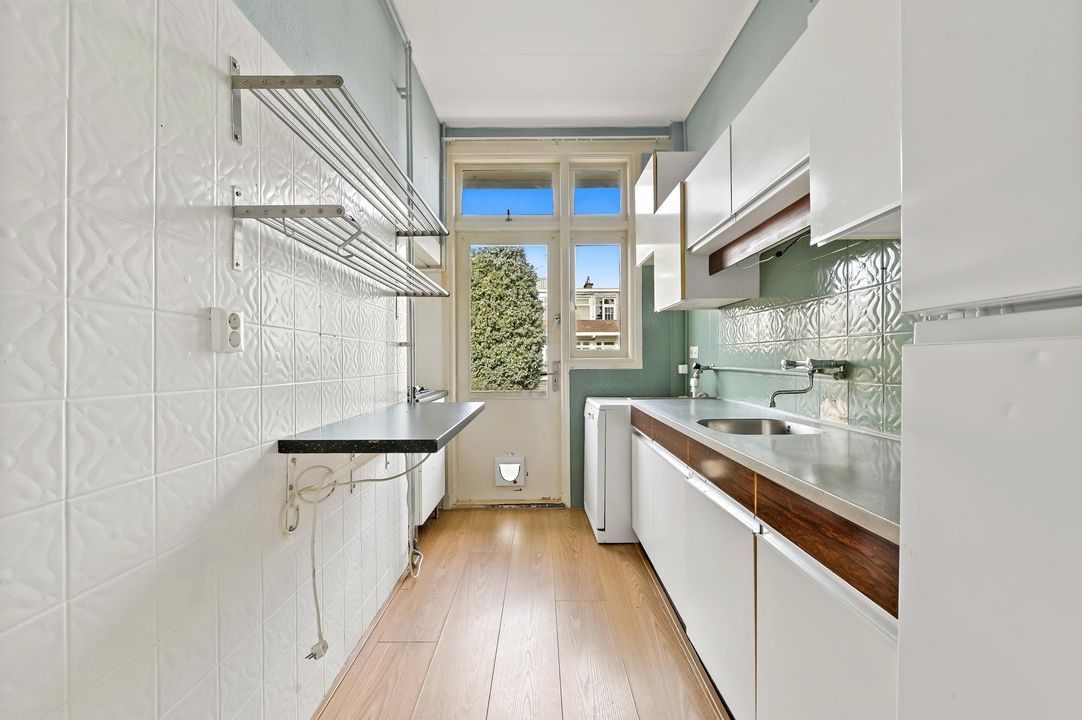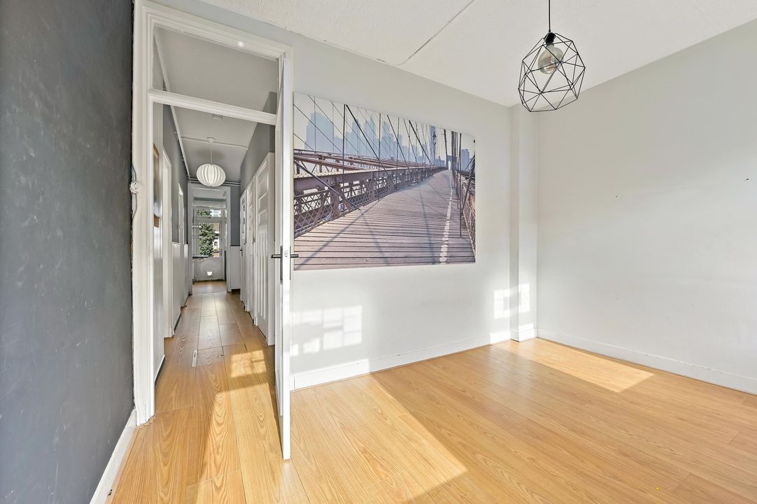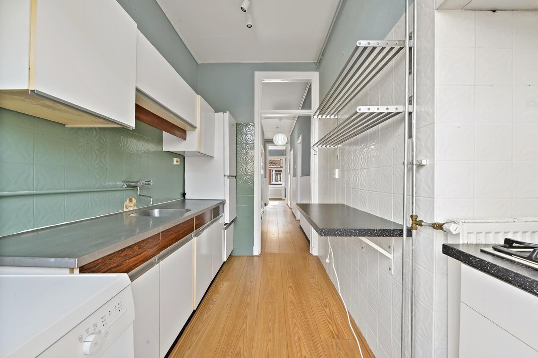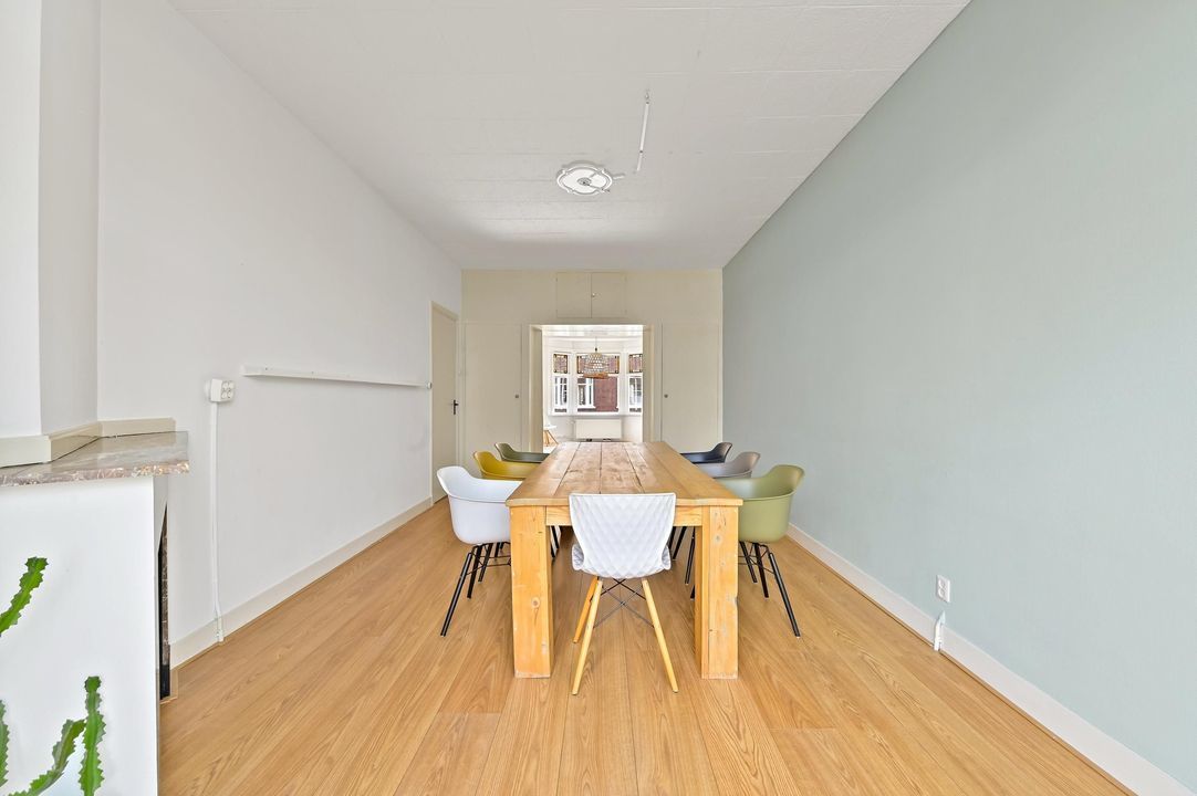 Welcome to this charming and spacious first-floor apartment in the sought-after Vruchtenbuurt. This characterful home offers plenty of opportunities to create a wonderful living space. With no less than 99 m² of living area, two generous bedrooms, and a cozy living/dining room featuring a classic en-suite room separation and built-in storage, this property exudes the characteristic charm of the 1930s.