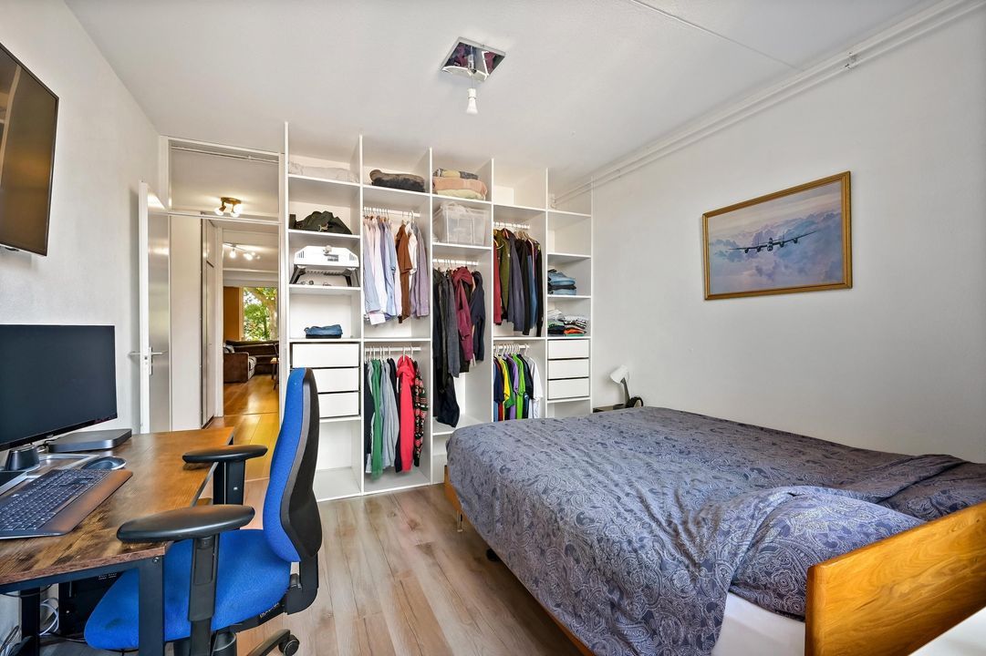 Entree woning, entreehal met meterkast, provisieruimte met C.V.-ketel en toegang tot slaapkamers, badkamer en woonkamer. Aan de voorzijde van de woning bevindt zich de slaapkamer welke toegang biedt tot het balkon. De badkamer bevindt zich centraal in de woning en beschikt over een douche, wastafelmeubel en wasmachine- en drogeraansluiting. Aan het eind van de hal is de toegang naar de woon-/eetkamer met open keuken. De woonkamer is van ruim formaat en geeft een fantastisch uitzicht over het park wat achter de woning is gelegen. De keuken is uitgevoerd in hoekopstelling en voorzien van diverse inbouwapparatuur.
