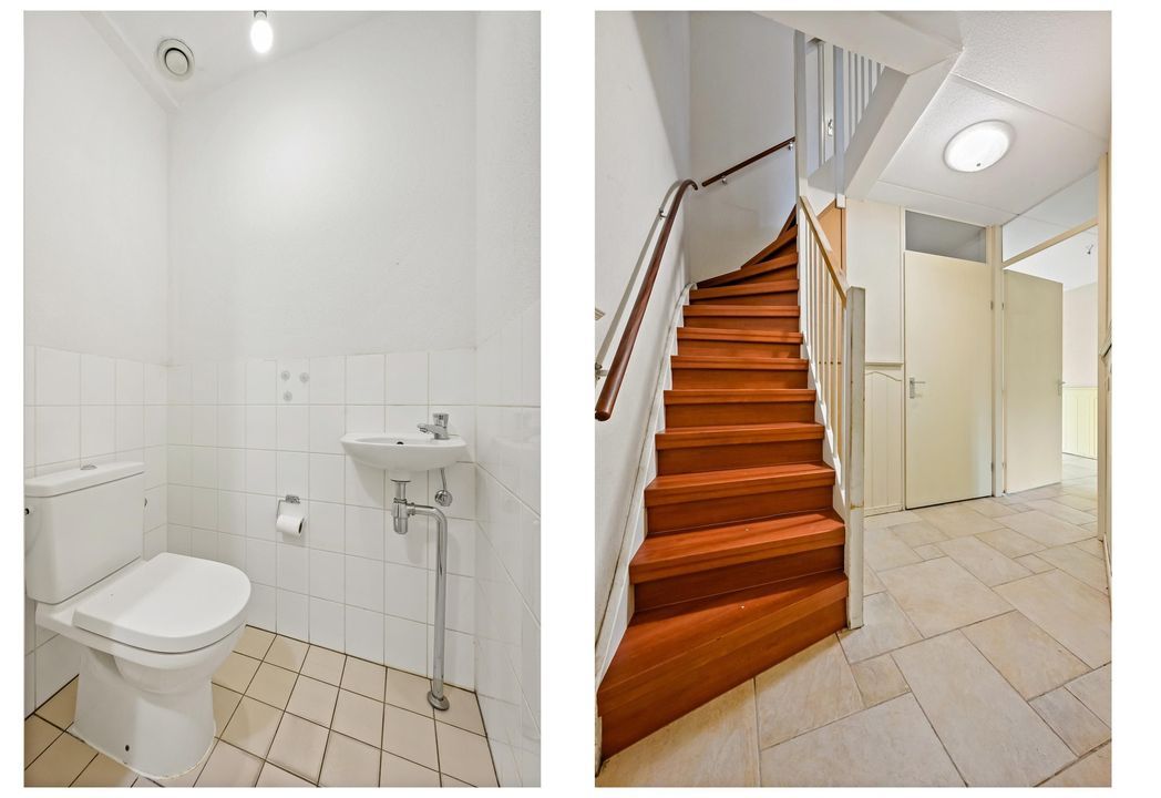 Binnenkomend via de voortuin stap je in de lichte hal met toilet en trapopgang.