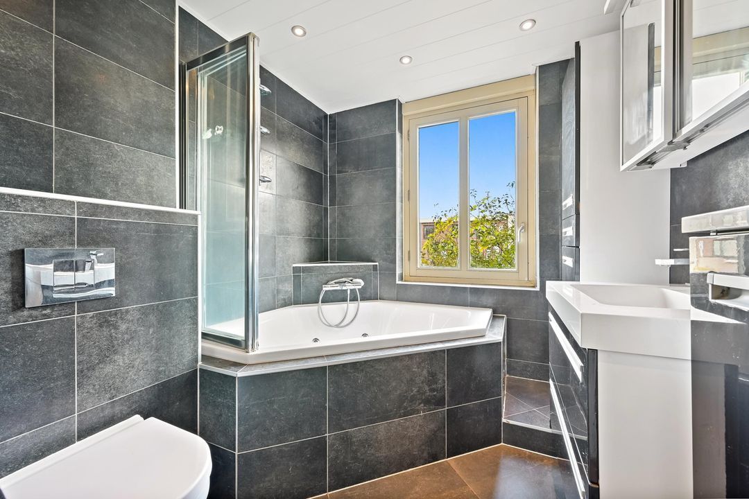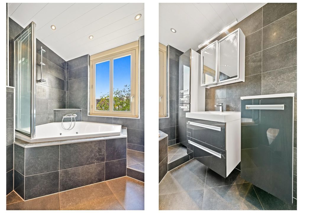 Op de eerste verdieping bevinden zich drie slaapkamers van verschillende afmetingen (circa 6 m², 10 m² en 15 m²) en een moderne badkamer met ligbad, wastafel, vloerverwarming en tweede toilet.