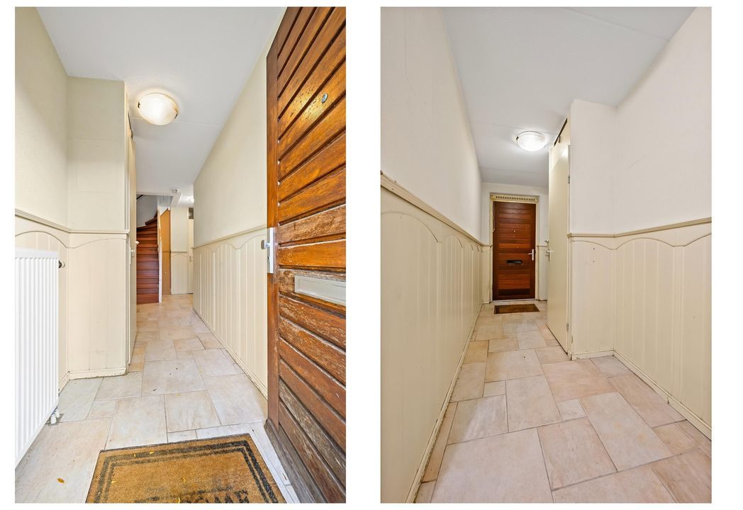 Entering through the front garden, you step into the bright hallway with toilet and staircase.