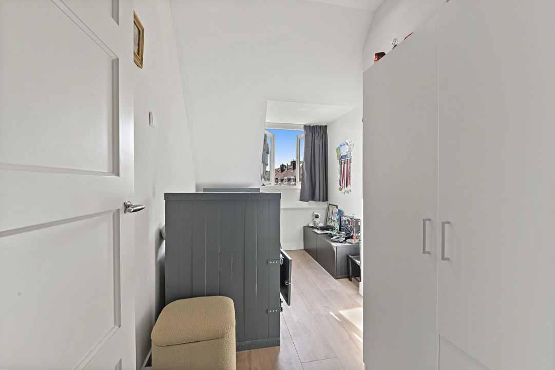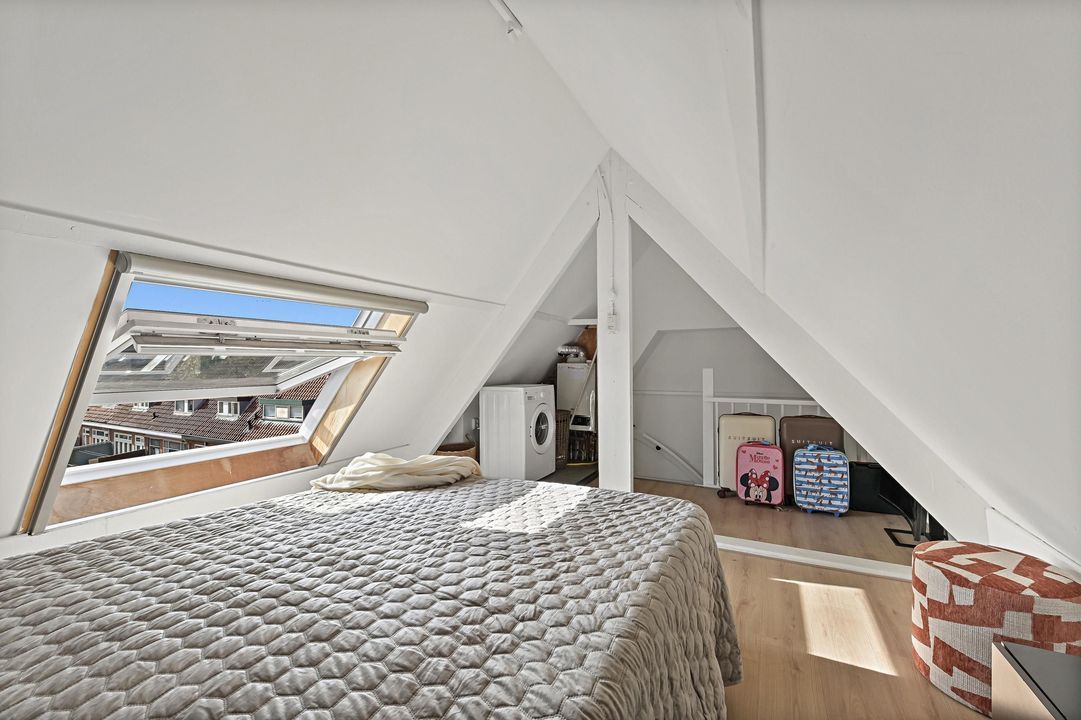 Deze verdieping is circa 2 jaar geleden volledig vernieuwd met dakisolatie, nieuwe vloer en stuk- en schilderwerk. Op deze verdieping vind je de wasmachineaansluiting en de opstelplaats voor de C.V.-ketel. Door de aanwezigheid van een groot dakraam heb je een heerlijke lichtinval en kan je deze kamer goed gebruiken als volwaardige slaapkamer.