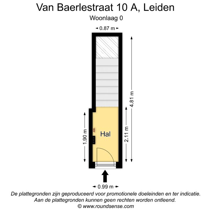 Entree op straatniveau, entreehal met meterkast en trap naar eerste verdieping.